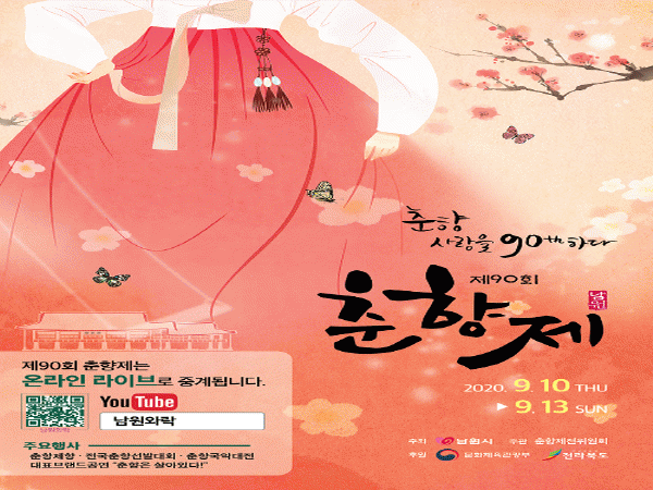 Á¦90ȸ ÃáÇâÁ¦´Â »õ·Î¿î ȯ°æ¿¡ ¹ßºü¸£°Ô ´ëÀÀÇØ ¿Â¶óÀΠä³ÎÀ» ½Å¼³ÇÏ¿´°í, ½Ã°£°ú °ø°£ÀÇ Á¦¾àÀ» ¹ÞÁö ¾Ê°í ¾ðÁ¦ ¾îµð¼³ª °ü¶÷ÇÒ ¼ö ÀÖ´Â ¿Â¶óÀÎÃàÁ¦¸¦ óÀ½À¸·Î ½ÃµµÇϰí ÀÖ¾î, Äڷγª½Ã´ë »õ·Î¿î ÃàÁ¦·Î ÁÖ¸ñ¹Þ°í ÀÖ´Ù. Á¦90ȸ ÃáÇâÁ¦´Â 9¿ù 10ÀϺÎÅÍ 13ÀϱîÁö ÃáÇâÁ¦Çâ, ÃáÇâ¼±¹ß´ëȸ, ´ëÇ¥ºê·£µå°ø¿¬ ¡°ÃáÇâÀº »ì¾ÆÀÖ´Ù¡±¸¦ ¡°³²¿ø¿Í¶ô¡±À» ÅëÇØ ¹«°ü°´¡¤»ýÁß°èÇϸç, ´ëÇѹα¹À» ´ëÇ¥ÇÏ¸ç ¸íâÀÇ »ê½Ç·Î ÀÚ¸®¸Å±èÇÑ ÃáÇâ±¹¾Ç´ëÀüµµ ¹«°ü°´À¸·Î ÁøÇàµÈ´Ù.