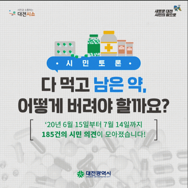 ´ëÀü½Ã´Â Áö³ 6¿ù 15ÀϺÎÅÍ 30Àϰ£ ¡®´Ù ¸Ô°í ³²Àº ¾à, ¾î¶»°Ô ¹ö·Á¾ß ÇÒ±î¿ä?¡¯¸¦ ÁÖÁ¦·Î ¿Â¶óÀÎ ½Ã¹ÎÅä·ÐÀ» ÁøÇàÇß´Ù.