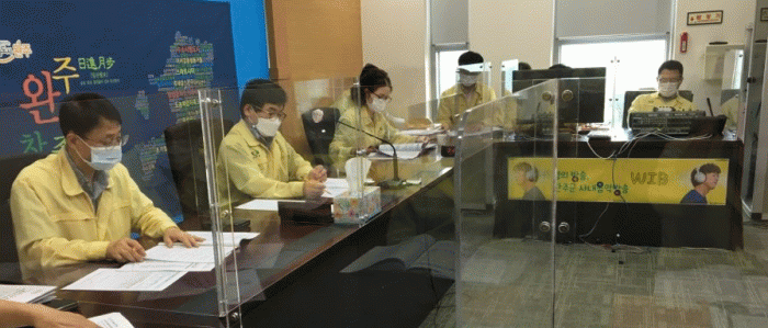 ÇÑÆí ¿ÏÁÖ±ºÀº Äڷγª19 ´ëÀÀÀÇ ¼±Á¦Àû ¹æ¿ª Â÷¿ø¿¡¼ ¿µ»óȸÀǽǵµ Á¼®º° Åõ¸í °¡¸²¸·À» ¼³Ä¡ÇØ ºñ¸» Â÷´Ü°ú Á÷¿ø °£ Á¢ÃË ÃÖ¼ÒÈ¿¡ ³ª¼°í ÀÖ´Ù.