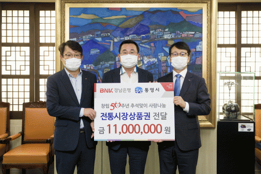 À̳¯ Àü´Þ½Ä¿¡ Âü¿©ÇÑ °æ³²ÀºÇà ¼ºÎ¿µ¾÷º»ºÎ °í¿µÁØ »ó¹«¿Í ¼Õ¿µÀÍ BNK °æ³²ÀºÇà Å뿵ÁöÁ¡ÀåÀº ¡°Áö¿ªÀÇ ´ëÇ¥ÀºÇàÀ¸·Î ¼ºÀåÇÒ ¼ö ÀÖµµ·Ï ¼º¿øÇØ ÁØ Áö¿ª¹Î¿¡°Ô °¨»çµå¸®¸ç, µû¶æÇÑ ¸íÀýÀ» º¸³»´Âµ¥ µµ¿òÀÌ µÇ±â¸¦ ¹Ù¶õ´Ù.¡±°í ¸»Çß´Ù.