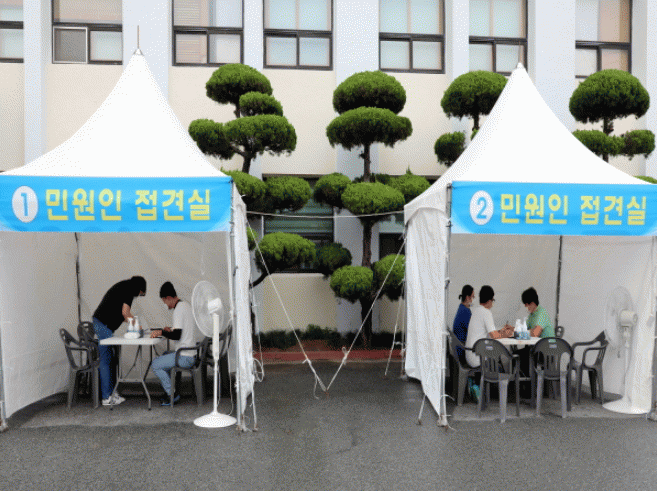 ±ºÀº û»ç ¾Õ ±¤Àå°ú ÁÖÂ÷Àå ÇÑÆí¿¡ ¹Î¿øÀÎ Á¢°ß½Ç 6µ¿À» ¼³Ä¡Çϰí, ¹Î¿øÀÎ ¹æ¹® ½Ã ´ã´ç °ø¹«¿øÀÌ Á÷Á¢ ã¾Æ°¡ »ó´ãÀ» ½Ç½ÃÇϰí ÀÖ´Ù.