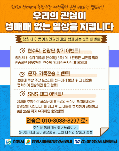 À̹ø Çà»ç´Â ½Ã¿Í â¿ø½Ã¾Æµ¿¡¤¿©¼ºÀαǿ¬´ë(ÁÖ°ü:°æ³²¿©¼ºÀαÇÁö¿ø¼¾ÅÍ)ÀÇ ¿©¼ºÆø·Â ±ÙÀý»ç¾÷ÀÇ ÀÏȯÀ¸·Î ÃßÁøµÇ°í, ¡®¿ì¸®ÀÇ °ü½ÉÀÌ ¼º¸Å¸Å ¾ø´Â ÀÏ»óÀ» Áöŵ´Ï´Ù¡¯¶ó´Â ¹®±¸¸¦ ½½·Î°ÇÀ¸·Î Çö¼ö¸·¡¤Àü±¤ÆÇ Ȱ¿ë°ú ÀÎÁõ¹®ÀÚ, SNS¸¦ ÅëÇÑ À̺¥Æ® Âü¿© Çü½ÄÀÇ Ä·ÆäÀÎÀ¸·Î ÁøÇàµÈ´Ù.