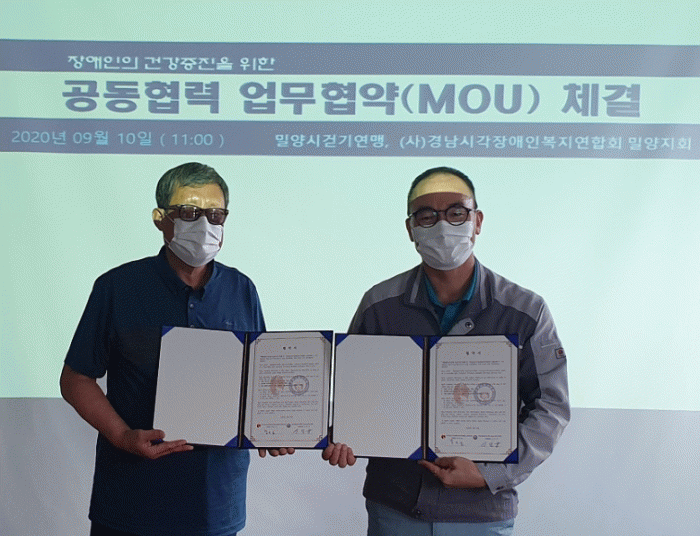 (»ç)°æ³²½Ã°¢Àå¾ÖÀκ¹Áö¿¬ÇÕȸ ¹Ð¾çÁöȸ´Â À̹ø '°øµ¿Çù·Â ¾÷¹«Çù¾à(MOU)'À» ÅëÇØ Á¤±âÀûÀ¸·Î ¹Ð¾ç½Ã °È±â¿¬¸ÍÀÇ °È±âÁöµµÀÚ¸¦ ÆÄ°ßÇØ ½Ã°¢Àå¾ÖÀΰú ÇÔ²² °È±â¿îµ¿À» Çϸç, ´õ ¸¹Àº ½Ã°¢Àå¾ÖÀεéÀÌ °È±â¿îµ¿À» ÅëÇØ °Ç°À» ÁõÁø½Ãų ¼ö ÀÖµµ·Ï ¹æ¹ý°ú °èȹ ¼ö¸³ µîÀ» ±³À°ÇÒ °èȹÀÌ´Ù.