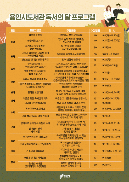 Áß¾Ó?Æ÷°î?µ¿¹é?¸ðÇö?º¸¶ó?³²»ç?¼öÁö?±¸¼º?Á×Àü?±âÈï?Èï´ö µî 11°³ °ø°øµµ¼°ü¿¡¼ 21°³ ÇÁ·Î±×·¥À» ¿î¿µÇÑ´Ù.