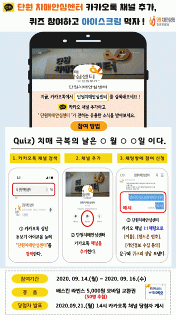 À̺¥Æ®´Â ´Ü¿øÄ¡¸Å¾È½É¼¾ÅͰ¡ Ä¡¸Å ȯÀÚ¿Í °¡Á·(º¸È£ÀÚ)°£ ¼ÒÅëÀÇ °ø°£À» ¸¶·ÃÇϰí Ä¡¸Å¿¡ ´ëÇÑ À¯¿ëÇÑ Á¤º¸¸¦ Á¦°øÇϱâ À§ÇØ ¿î¿µ ÁßÀÎ ¡®Ä«Ä«¿À ä³Î¡¯À» ÅëÇØ ÁøÇàµÈ´Ù.