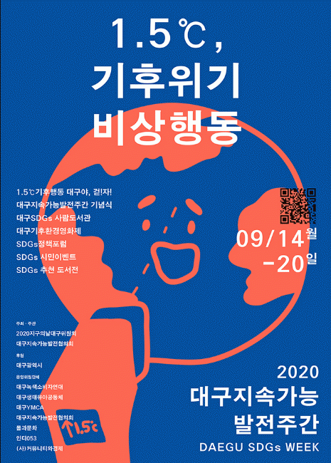 ´ë±¸Áö¼Ó°¡´É¹ßÀüÁÖ°£ ½Ã¹Î¹®ÈÇà»ç·Î SDGs»ç¶÷ÄܼƮ¿Í ´ë±¸±âÈÄȯ°æ¿µÈÁ¦°¡ °³ÃֵȴÙ. SDGs»ç¶÷Ã¥ ÄܼƮ¿¡¼´Â ±âÈĺ¯È´ëÀÀ, Áö¼Ó°¡´ÉÇÑ µµ½Ã¿Í °øµ¿Ã¼, Áö¼Ó°¡´ÉÇÑ »ý»ê°ú ¼Òºñ, ºÒÆòµî °¨¼Ò µî ´Ù¾çÇÑ ¿µ¿ª¿¡¼ Áö¼Ó°¡´ÉÇÑ Áö¿ª»çȸ¸¦ ¸¸µé¾î°¡´Â Ȱµ¿°¡µéÀ» ¸¸³¯ ¼ö ÀÖ´Ù. ±âÈÄȯ°æ¿µÈÁ¦´Â ±âÈÄÀ§±â¿Í Áö¼Ó°¡´É¹ßÀü¿¡ ´ëÇØ »ý°¢Çغ¼ ¼ö ÀÖ´Â µÎ ÆíÀÇ ¿µÈ(ÀÚµ¿Â÷vsÀÚÀü°Å, 2040-Áö¼ÓÀÇ °¡´É¼º)¸¦ °¨»óÇÏ°í ½Ã¹Îµé°ú ÇÔ²² À̾߱⸦ ³ª´ ¿¹Á¤ÀÌ´Ù. SDGs »ç¶÷ÄܼƮ´Â 9¿ù 16Àϰú 18ÀÏ, SDGs ¿µÈÁ¦´Â 9¿ù 17Àϰú 20ÀÏ ¿À¿À±ØÀå¿¡¼ °³ÃֵȴÙ.