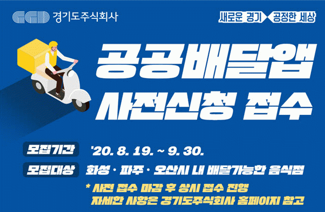 ÇÑÆí, À̹ø °æ±âµµ °ø°ø¹è´Þ¾Û »çÀü ½Åû Á¢¼ö´Â ¿À´Â 9¿ù 30ÀϱîÁö °æ±âµµÁÖ½Äȸ»ç ȨÆäÀÌÁö¸¦ ÅëÇØ ¿Â¶óÀÎ Á¢¼ö °¡´ÉÇÏ´Ù.