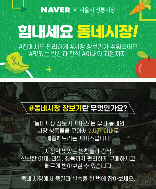 ¶ÇÇÑ ±¸´Â 4°³ ÀüÅë½ÃÀå(¿ì¸², µ¿¿ø, »ç°¡Á¤, µ¿¿ø»óÁ¡°¡)À» ´ë»óÀ¸·Î ¿Â¶óÀÎ ¹è¼Û¼ºñ½º¸¦ ½Ã¹ü ¿î¿µÇϰí, ³»³â±îÁö Áö¿ª ³» ¸ðµç ÀüÅë½ÃÀåÀ¸·Î ¼ºñ½º¸¦ È®´ëÇÑ´Ù°í ¹àÇû´Ù. ºñ´ë¸é ¿Â¶óÀÎ ¼ºñ½º¸¦ ÀÌ¿ëÇϸé Áý¿¡¼ ÀüÅë½ÃÀåÀÇ ½Å¼±ÇÑ ½ÄÀç·á¿Í ´Ù¾çÇÑ ¸Ô°Å¸®¸¦ 2½Ã°£ ³»¿¡ ¹è¼Û ¹ÞÀ» ¼ö ÀÖ´Ù.