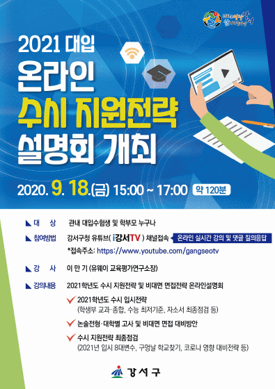 ³ëÇö¼Û ±¸Ã»ÀåÀº ¡°Äڷγª19·Î ¾î·Á¿òÀ» °Þ°í ÀÖ´Â ¼öÇè»ýµé¿¡°Ô µµ¿òÀ» ÁÖ°íÀÚ ¿Â¶óÀÎ ¼³¸íȸ¸¦ ¸¶·ÃÇÏ°Ô µÇ¾ú´Ù¡±¶ó¸ç ¡°¼³¸íȸ¸¦ ÅëÇØ º»Àο¡°Ô ¸Â´Â ÀÔ½ÃÀü·«À» ¼¼¿ö ÁÁÀº °á°ú°¡ Àֱ⸦ ¹Ù¶õ´Ù¡±¶ó°í ¸»Çß´Ù.