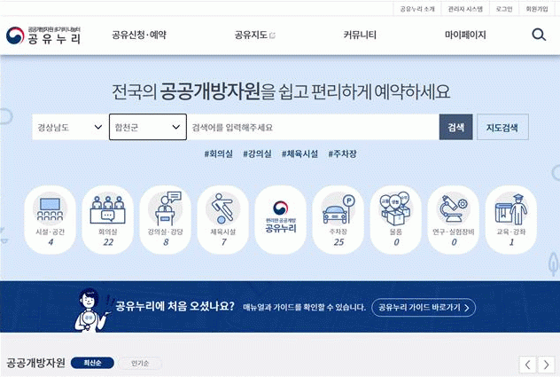 ¡¸°øÀ¯´©¸®¡¹´Â ÇàÁ¤¾ÈÀüºÎ¿¡¼ ¿î¿µÇÏ´Â ´ë±¹¹Î °ø°ø°³¹æÀÚ¿ø °øÀ¯ ¼ºñ½º ÅëÇÕÆ÷ÅзΠÁß¾ÓÇàÁ¤±â°ü, Áö¹æÀÚÄ¡´Üü, °ø°ø±â°ü µîÀÌ ±¹¹Î¿¡°Ô °³¹æÇϴ ȸÀǽÇ, °ø°øÁÖÂ÷Àå, ½Ã¼³, ¹°Ç° µî °ø°ø°³¹æÀÚ¿øÀ» ¿Â¶óÀο¡¼ ÇöȲÀ» È®ÀÎÇÏ°í Æí¸®ÇÏ°Ô ¿¹¾àÇÏ´Â ¼ºñ½ºÀÌ´Ù.