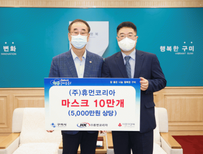 9. 15(È) ¸¶½ºÅ© Á¦Á¶, Åë½ÅÆÇ¸Å¾÷üÀÎ (ÁÖ)ÈÞ¸ÕÄÚ¸®¾Æ(´ëÇ¥ÀÌ»ç ¸ðµ¿È¯)¿¡¼ Àç³Ãë¾à°èÃþ Áö¿ø¿¡ ½á´Þ¶ó¸ç ±¸¹Ì½Ã¿¡ ¸¶½ºÅ© 10¸¸¸Å¸¦ Àü´ÞÇÏ¿´´Ù.