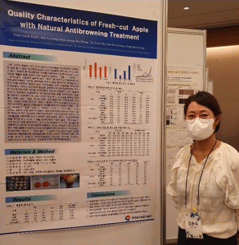±èÀ±¼÷ ¿¬±¸»ç°¡ ¼ö»óÇÑ ¹ßÇ¥ ³»¿ëÀº ¡®Ãµ¿¬ °¥º¯¾ïÁ¦Á¦¸¦ ó¸®ÇÑ ½Å¼±ÆíÀÌ(Fresh-cut)»ç°úÀÇ Ç°Áúº¯È¡¯ÀÌ´Ù. 1ÀÎ °¡±¸¿Í ¸Â¹úÀÌ °¡±¸ Áõ°¡ µîÀ¸·Î °£ÆíÇÏ°Ô ¼·ÃëÇÒ ¼ö ÀÖ´Â ½Å¼±ÆíÀÌ °¡°øÇ°¿¡ ´ëÇÑ ¼ö¿ä°¡ Áõ°¡ÇÏ¸é¼ Ãµ¿¬¹°ÁúÀ» ÀÌ¿ëÇÏ¿© »ç°úÀÇ °¥º¯ ÀúÇØÈ¿°ú¿Í °¥º¯ÀÌ ÀûÀº ǰÁ¾À» Á¦½ÃÇØ »ý°ú¼Òºñ¸¦ ´Ã¸± ¼ö ÀÖ´Â ¹æ¾ÈÀ» Á¦½ÃÇÔÀ¸·Î½á ¿¬±¸ ¼º°ú¸¦ ÀÎÁ¤¹Þ¾Æ ÁÁÀº Æò°¡¸¦ ¹Þ¾Ò´Ù.