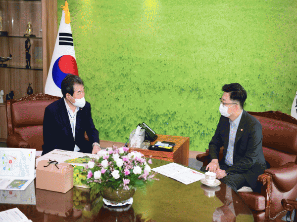 ÀÌ¹Ì Áß¾ÓÁ¤ºÎ ¹× °æ»óºÏµµ¸¦ ¼öÂ÷·Ê ¹æ¹®ÇÏ¿© º» »ç¾÷ÀÇ ¼¼ºÎÃßÁø ¹æ¾È¿¡ ´ëÇØ ÇùÁ¶¸¦ ±¸Çϰí ÇâÈÄ¿¡ ÇÊ¿äÇÑ Áö¿øÀ» ÃæºÐÈ÷ ÇùÀÇÇß´ø ±èÃæ¼· ±èõ½ÃÀåÀº Áö³ 9¿ù 14ÀÏ ³ó¸²Ãà»ê½ÄǰºÎ¸¦ ¹æ¹®ÇÏ¿© ±èÇö¼ö ³ó¸²Ãà»ê½ÄǰºÎ Àå°ü ¹× ÀÌÀç¿í Â÷°ü°ú ÇÔ²² ³ó»ê¹°Á¾ÇÕÀ¯ÅëŸ¿î °Ç¸³¿¡ ´ëÇÑ ¹æ¾ÈÀ» ÇÔ²² ¸ð»öÇÏ°í °Ç¸³¿¡ µû¸¥ ±¹ºñÁö¿øÀ» ÀçÂ÷ °ÇÀÇÇÏ¿´´Ù. À̳¯ ±èÃæ¼· ½ÃÀåÀº ±èõ½ÃÀÇ ³ó»ê¹°Á¾ÇÕÀ¯ÅëŸ¿î °Ç¸³¿¡ ´ëÇÑ ´çÀ§¼º°ú Çʿ伺À» ÃæºÐÈ÷ ¼³¸íÇÏ¸ç ±èõÀ» ³ó»ê¹° À¯ÅëÀÇ ½Å°ÅÁ¡Áö¿ªÀ¸·Î ¸¸µå´Â ÇÑÆí, ±¹ÅäÁß½ÉÀÇ ±èõÀÌ ´ëÇѹα¹ ³ó¾÷°æÁ¦È°¼ºÈ¿¡ ¼±µÎ°¡ µÇ°Ú´Ù´Â ÀÇÁö¸¦ ¹àÇû´Ù.
