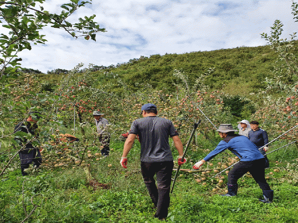 À̵éÀº Á¶¼ÓÇÑ º¹±¸¸¦ ÇÊ¿ä·Î ÇÏ´Â ¿µ¾çÀ¾ ´ëõ2¸®ÀÇ ÇÑ ³ó°¡¿¡¼ ÅÂdzÀ¸·Î ¾²·¯Áø »ç°ú³ª¹« 850ÁÖ¸¦ ÀÏÀ¸ÄÑ ¼¼¿ì°í ÅÂdz¿¡ ¶³¾îÁø »ç°ú¸¦ ÁÝ´Â µî ÇѸ¶À½À¸·Î ±¸½½¶¡À» Èê·È´Ù.