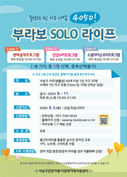 9¿ùºÎÅÍ 11¿ù±îÁö ½Ç½ÃÇÒ ¿¹Á¤ÀÌ¸ç »ç»ó±¸ °ÅÁÖ ¶Ç´Â »ýȰ±Ç(Á÷Àå)ÀÎ 40¼¼ ÀÌ»ó 1Àΰ¡±¸´Â ´©±¸µç ½Åû °¡´ÉÇÏ´Ù. Äڷγª19 È®»ê ¹æÁö ¹× ¿¹¹æÀ» À§ÇØ ¿Â¶óÀÎ Ç÷§ÆûÀ» Ȱ¿ëÇÏ¿© ¾ç¹æÇâÀ¸·Î ±³À°ÀÌ ÁøÇàµÇ¸ç, ÃßÈÄ Äڷγª »óȲ¿¡ µû¶ó ¿ÀÇÁ¶óÀÎÀ¸·Î º¯°æµÉ ¼ö ÀÖ´Ù.