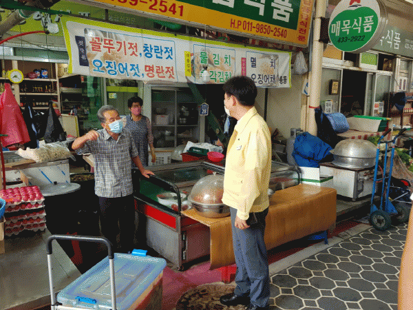 ±èõ½Ã ÀÏÀÚ¸®°æÁ¦°ú Á÷¿øµé°ú ÆòÈ¡¤È²±Ý½ÃÀå »óÀÎȸ ÀÓ¿øÁøµéÀº À̸¥ ¾ÆÄ§ºÎÅÍ ½ÃÀå °÷°÷À» µ¹¸ç ¸¶½ºÅ©¸¦ Âø¿ëÇÏÁö ¾ÊÀº »óÀεé°ú ¹æ¹®°´µé¿¡°Ô ¸¶½ºÅ©¸¦ Á÷Á¢ ¹èºÎÇÏ¿´´Ù. ¶ÇÇÑ ¼¹Î°æÁ¦ ÃÖÀϼ±ÀÌÀÚ ´Ù¼öÀÎÀÌ ¹æ¹®ÇÏ´Â ½ÃÀåÀÇ Æ¯¼º»ó »óÀεéÀÇ ¸¶½ºÅ© Âø¿ë°ú ¼Õ¾Ä±â, ±âħ¿¹ÀýÀ» ÁöŰ°í °¨¿°º´ÀÌ ÀÇ½ÉµÉ ¶© º¸°Ç¼Ò¿¡ »ó´ãÇϵµ·Ï ÇùÁ¶¸¦ ¿äûÇϰí ÀÖ´Ù.