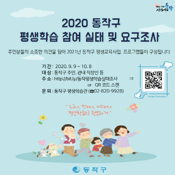 Âü¿©¹æ¹ýÀº ±¸ ȨÆäÀÌÁö ¡®¾Ë·Áµå¸³´Ï´Ù¡¯ ÆäÀÌÁö ³» ÇØ´ç °Ô½Ã±Û ¼³¹®¸µÅ©(bit.ly/µ¿ÀÛÆò»ýÇнÀ½ÇÅÂÁ¶»ç) ¶Ç´Â È«º¸¹° QRÄÚµå ½ºÄµÀ» ÅëÇØ °¡´ÉÇÏ´Ù. ÀÚ¼¼ÇÑ ¹®ÀÇ´Â ±³À°Á¤Ã¥°ú(¢Ï 02-820-9928)·Î ¹®ÀÇÇÏ¸é ¾È³»¹ÞÀ» ¼ö ÀÖ´Ù.