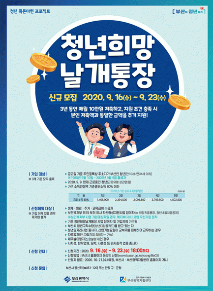 ºÎ»ê½Ã´Â ³»ÀÏ(16ÀÏ)ºÎÅÍ ¿À´Â 23ÀϱîÁö û³âÈñ¸Á³¯°³ÅëÀå ½Å±Ô°¡ÀÔÀÚ 650¸íÀ» ¸ðÁýÇØ 3³â°£ Áö¿øÇÒ °èȹÀÌ´Ù.