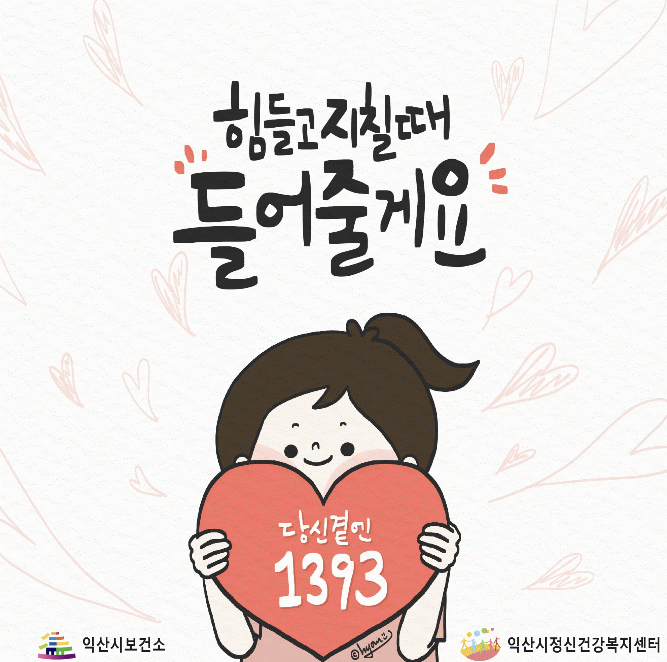 ÇöÀç ¿ì¿ï°¨À» ´À³¢°Å³ª Àڻ쿡 ´ëÇÑ »ý°¢ ¶§¹®¿¡ µµ¿òÀÌ ÇÊ¿äÇÑ ½Ã¹ÎµéÀº ¡®24½Ã°£ Àڻ쿹¹æ»ó´ãÀüÈ 1393¡¯ ¶Ç´Â ¡®ÀÍ»ê½ÃÁ¤½Å°Ç°º¹Áö¼¾ÅÍ 063-841-4235¡¯·Î ¹®ÀÇÇÏ¸é µÈ´Ù.