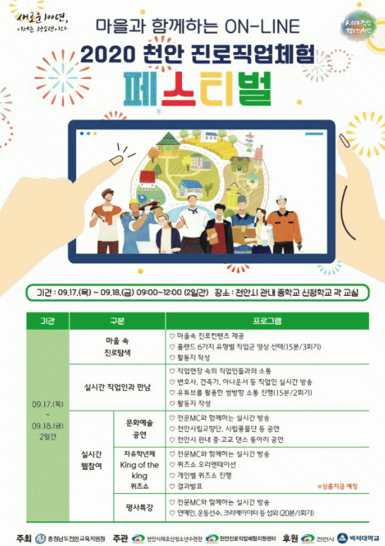 3±³½Ã ¡®¹®È¿¹¼ú°ø¿¬(½Ç½Ã°£ À¥Âü¿© ÇÁ·Î±×·¥)¡¯Àº Áß¡¤°íµîÇб³ ´í½ºµ¿¾Æ¸® µî°ú ÇÔ²²ÇÏ´Â ¹®È¿¹¼ú°ø¿¬, ÃÖÇö¿ì ¸¶¼ú»ç¿Í ÀÓ¶ó¶ó Å©¸®¿¡ÀÌÅ͸¦ ÃÊûÇÑ ¸í»çƯ°, ½Ç½Ã°£ À¥Âü¿©Çü ÄûÁî¼î°¡ ÆîÃÄÁ® ¡®³»°¡ »ì°í Àִ õ¾ÈÁö¿ª ¹Ù·Î ¾Ë±â¡¯, ¡®Áø·Î, Á÷¾÷ ¹Ù·Î ¾Ë±â¡¯ µîÀÌ ÁøÇàµÈ´Ù.