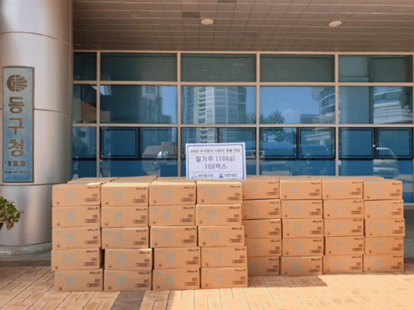 [´ëÇÑ¿©¼ºÀϺ¸]ºÎ»ê½Ã µ¿±¸ ´ëÇÑÁ¦ºÐ(ÁÖ)ºÎ»ê°øÀå(´ëÇ¥ ¼ÛÀμ®)Àº Áö³ 15ÀÏ ÀÌ¿ôµé°ú µû¶æÇÑ Ãß¼®À» º¸³»°íÀÚ »ç¶ûÀÇ ¼ºÇ° ¹Ð°¡·ç 10kg, 100¹Ú½º(ȯ°¡¾× 100¸¸¿ø »ó´ç)¸¦ Àü´ÞÇß´Ù.