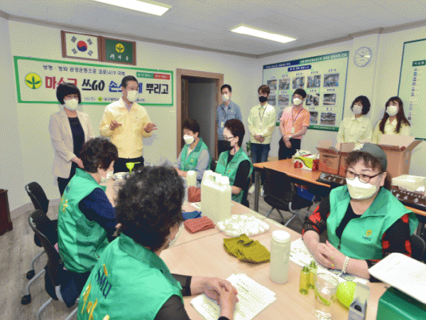 À̳¯, °¢µ¿ »õ¸¶À» ºÎ³àȸ ȸÀåµé·Î ±¸¼ºµÈ ³²±¸ »õ¸¶À» ºÎ³àȸ ºÀ»ç´Ü ´Ü¿ø 13¸íÀº ¡®¸¶½ºÅ© ¾²GO ¼Õ¼Òµ¶Á¦ »Ñ¸®GO!¡¯ ¶ó´Â ½½·Î°ÇÀ¸·Î ¼Õ ¼Òµ¶Á¦ 500°³¸¦ Á÷Á¢ ¸¸µé¾ú´Ù.