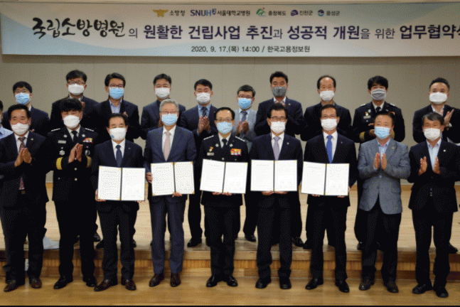 À̹ø Çù¾à½ÄÀº À̽ÃÁ¾ ÃæºÏµµÁö»ç, Á¤¹®È£ ¼Ò¹æÃ»Àå, ±è¿¬¼ö ¼¿ï´ëÇб³º´¿øÀå, Á¶º´¿Á À½¼º±º¼ö, ¼Û±â¼· ÁøÃµ±º¼ö°ú ±è±ââ, ÀÌ»óÁ¤ µµÀÇ¿ø µîÀÌ Âü¼®ÇÑ °¡¿îµ¥ ±¹¸³¼Ò¹æº´¿øÀÇ ¼³°è, Àü¹®±â¼ú, ÀηÂ, ÀçÁ¤Áö¿øÀº ¹°·Ð, Áö¼Ó¹ßÀü °¡´ÉÇÑ Á¾ÇÕº´¿øÀ¸·Î µµ¾àÇϱâ À§ÇÑ Æ÷°ýÀû Çù·Âü°è ±¸ÃàÀ» ¸ñÀûÀ¸·Î ÁøÇàµÆ´Ù.