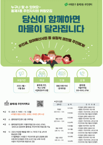 ¼ö° Èñ¸ÁÀÚÀº »çÀü¿¡ ¼´ë¹®±¸ È«Á¦3µ¿Áֹμ¾ÅÍ ¸¶À»ÀÚÄ¡ÆÀ(330-6766, 4343)À¸·Î ÀüÈÇϰųª ¿Â¶óÀÎ(https://forms.gle/ENEUKXmk9FTYRsrWA)À¸·Î ½ÅûÇÏ¸é µÈ´Ù.