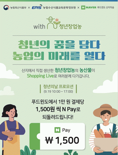 û³â ³ó¾÷ÀÎ ´ë»ó »çÀü ÀÔÁ¡ ±³À° ¹× ÆÇ¸Å ¼ö¼ö·á(2~3%) ¸éÁ¦ µîÀ» Áö¿øÇϰí, ³×À̹ö ǪµåÀ©µµ »êÁöÁ÷¼Û ÄÚ³Ê ³» ±âȹÆäÀÌÁö¸¦ °³¼³ÇÏ¿©, 1¸¸¿ø ±¸¸Å ´ç 1,500¿øÀÇ Npay¸¦ µ¹·ÁÁÖ´Â ÇÁ·Î¸ð¼ÇÀ» ÃßÁøÇϰí(9.18~), û³âÀÇ ³¯(9.19, Åä)¿¡´Â û³â ³ó¾÷ÀΠƯÁýÀ¸·Î 10½ÃºÎÅÍ 17½Ã±îÁö Àü±¹ °¢Áö(Àü³² º¸¼º, °æ±â ¾çÆò, °æºÏ ¿µÁÖ µî)ÀÇ 6°³ û³â ³ó°¡¿¡¼ ¼îÇÎ ¶óÀ̺긦 ÁøÇàÇϰí, ¹æ¼Û Áß ±¸¸Å °í°´¿¡°Ô´Â Npay Áö±Þ°ú ÇÔ²² Ãß°¡ÇÒÀÎ ¹× »çÀºÇ° ÁõÁ¤ µîÀÇ ÇýÅÃÀ» Á¦°øÇÑ´Ù.
