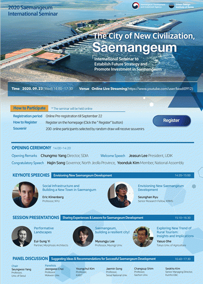 ¼¼¹Ì³ª¿¡ Âü¿©¸¦ ¿øÇÏ´Â »ç¶÷Àº »õ¸¸±Ýû ´©¸®Áý(www.saemangeum.go.kr)À» ÅëÇØ 9¿ù 22ÀϱîÁö »çÀü Âü°¡Á¢¼ö¸¦ ÇÏ¸é µÈ´Ù.