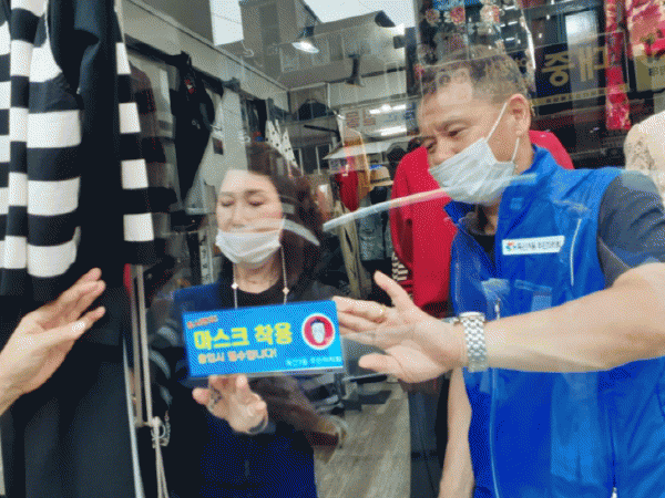 µ¶»ê3µ¿ ÁÖ¹ÎÀÚġȸ´Â ÁÖ¹ÎÀÚÄ¡ À§¿øµéÀÌ ¸¶½ºÅ© Âø¿ë ¾È³» Ç¥Áö 1,200¸Å¸¦ ÀÚü Á¦ÀÛÇØ Áö¿ª »ó°¡ ÃâÀÔ¹® µî¿¡ Á÷Á¢ ºÎÂøÇϰí, Äڷγª19·Î Èûµé¾îÇÏ´Â ÀÚ¿µ¾÷ÀÚµéÀ» À§·ÎÇϰí Áֹεé°ú ¼ÒÅëÇÏ´Â ½Ã°£À» ¸¶·ÃÇß´Ù.