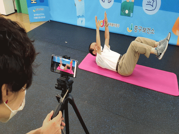 Áö³ 17ÀÏ ¾à¼öµ¿ Áֹμ¾ÅÍ ´ë°´ç¿¡¼ ±èº¹·Ê(¿©, 59¼¼)¾¾°¡ ¿µ»óÀåºñ¸¦ ¾Õ¿¡ µÎ°í ½ºÆ®·¹Äª µ¿ÀÛÀ» ¼±º¸ÀÌ¸ç ¾î¸£½Åµé°ú ´ëÈÇϰí ÀÖ´Ù. ÀÌ´Þ ÃÊ ½Å¼³µÈ Áß±¸ ¿Â¶óÀÎ °æ·Î´çÀ» ÅëÇØ¼´Ù.