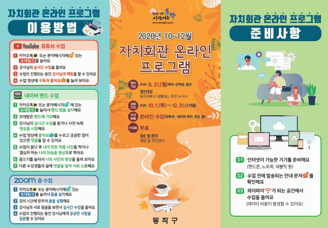 µ¿ÀÛ±¸¿¡¼ »ýȰÇÏ´Â ÁÖ¹ÎÀÌ¸é ´©±¸³ª ¹«·á·Î Âü¿©ÇÒ ¼ö ÀÖÀ¸¸ç, 21ÀÏ(¿ù)ºÎÅÍ ÇØ´ç µ¿Áֹμ¾ÅÍ ¹æ¹® ¶Ç´Â ±¸ ȨÆäÀÌÁö µîÀ» ÅëÇØ ¼±Âø¼øÀ¸·Î ½ÅûÇÏ¸é µÈ´Ù.