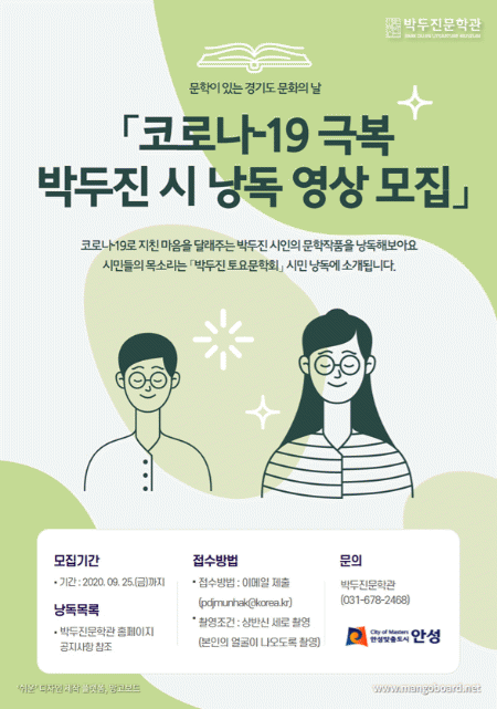 ¸ðÁý ¿µ»óÀº ¹ÚµÎÁø¹®Çаü À̸ÞÀÏ(pdjmunhak@korea.kr)À» ÅëÇØ Á¢¼ö ¹ÞÀ¸¸ç, º»ÀÎÀÇ ¾ó±¼ÀÌ ³ª¿À´Â »ó¹Ý½ÅÀ» ÃÔ¿µÇÏ¿© Á¦ÃâÇÏ¸é µÈ´Ù. ³¶µ¶ ¸ñ·Ï ¹× ÀÚ¼¼ÇÑ ¸ðÁý ¹æ¹ýÀº ¹ÚµÎÁø¹®Çаü ȨÆäÀÌÁö °øÁö»çÇ×À» ÂüÁ¶ÇÏ¸é µÈ´Ù.