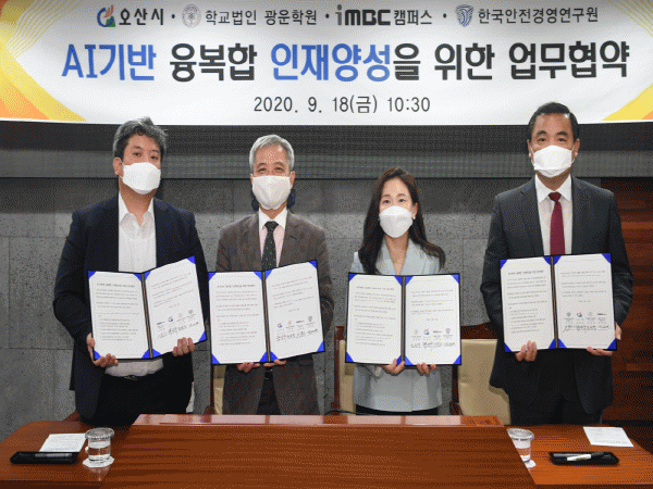 ¿À»ê½Ã´Â 18ÀÏ Çб³¹ýÀÎ ±¤¿îÇпø(ÀÌ»çÀå Á¶¼±¿µ), iMBCÄ·ÆÛ½º(´ëÇ¥ÀÌ»ç Á¶Ãæ¿), Çѱ¹¾ÈÀü°æ¿µ¿¬±¸¿ø(ÁÖ)(´ëÇ¥ÀÌ»ç ¹Ú¼º¸é)°ú 4Â÷ »ê¾÷Çõ¸í ½Ã´ë¿¡ ÇÊ¿äÇÑ ÀÎÀç¾ç¼ºÀ̶ó´Â °øµ¿ÀÇ ¸ñÇ¥ ÃßÁøÀ» À§ÇÑ ¾÷¹«Çù¾àÀ» ü°áÇß´Ù.