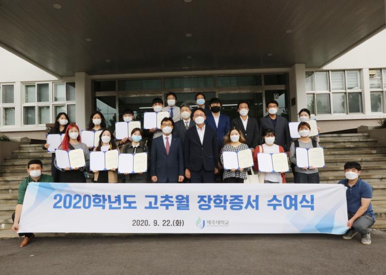 ÀåÇбÝÀº Á¦ÁÖ´ë Áß¾îÁß¹®Çаú Çлý µî 13¸í¿¡°Ô Àü´ÞµÆ´Ù. À̳¯ ÀåÇбÝÀº °íÃß¿ù ȸÀåÀ» ´ë½ÅÇØ ÀÌâÇå ¿ùÀÚÆ÷Àå ´ëÇ¥À̻簡 Àü´ÞÇß´Ù.