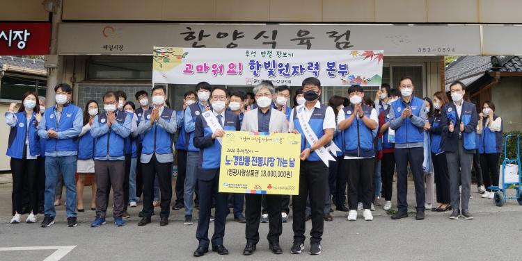 ¿ÂÁ¤ ³ª´® Çà»ç¿¡´Â À̽Âö ÇѺû¿øÀÚ·Â º»ºÎÀå°ú ±è¼®ºÀ ³ëÁ¶À§¿øÀå µî ÀÓÁ÷¿ø 50¿©¸íÀÌ Âü¿©ÇØ Áö¿ªÈÆäÀÎ ¿µ±¤»ç¶û»óǰ±ÇÀ¸·Î Á÷Á¢ ¹°Ç°À» ±¸¸ÅÇØ ±× Àǹ̸¦ ´õÇß´Ù.
