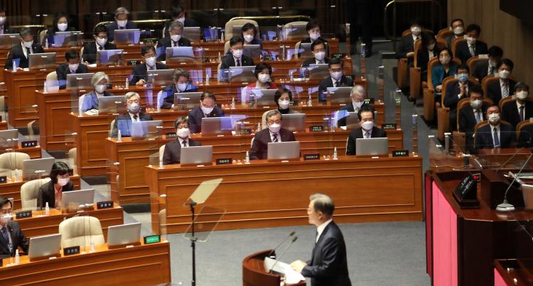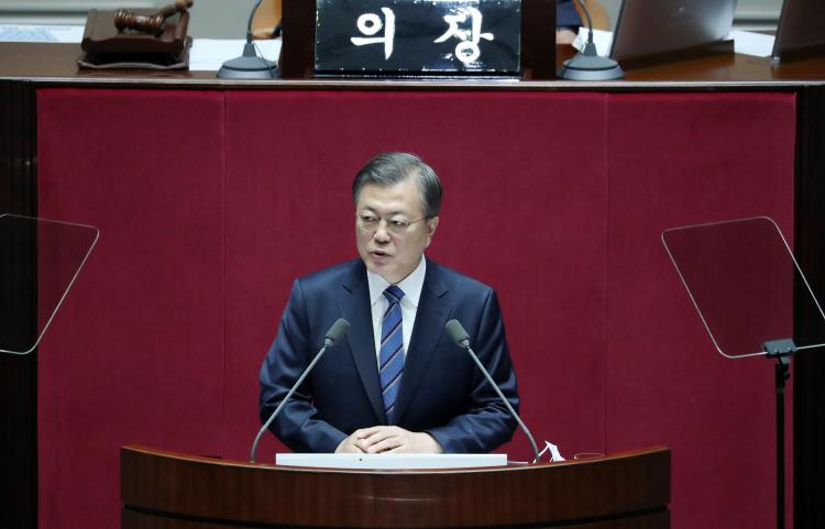 ¹® ´ëÅë·ÉÀº À̳¯ ¿ÀÀü ±¹È¸¿¡¼ ¿¸° 2021³âµµ Á¤ºÎ ¿¹»ê¾È ½ÃÁ¤¿¬¼³¿¡¼ À̰°ÀÌ ¸»ÇÑ µÚ "Çѹݵµ ÆòÈ´Â ¿ì¸® ¸ðµÎ¿¡°Ô ÁÖ¾îÁø ½Ã´ëÀû ¼Ò¸íÀÌ´Ù. ¿ì¸® ¾Õ¿¡ ³õÀÎ À庮µéÀ» ÇϳªÇϳª ¶Ù¾î³ÑÀ¸¸ç, ½Ã°£ÀÌ °É¸®´õ¶óµµ ¿ì¸®´Â ¹Ýµå½Ã ÆòÈ·Î °¡¾ß ÇÑ´Ù"°í ¸»Çß´Ù.