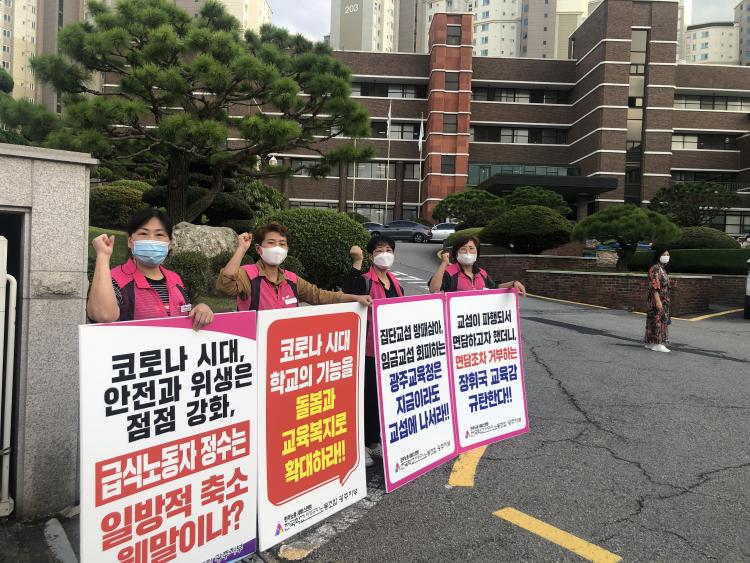 Çб³ ±Þ½Ä½Ç Á¶¸®¿ø °¨¿ø ¹®Á¦¸¦ ³õ°í ÆòÇ༱À» ´Þ¸®´ø ±¤Áֽñ³À°Ã»°ú Àü±¹Çб³ºñÁ¤±ÔÁ÷³ëµ¿Á¶ÇÕ ±¤ÁÖÁöºÎ(ÀÌÇÏ Çкñ³ë ±¤ÁÖÁöºÎ)°¡ ¼ÕÀ» ¸ÂÀâ¾Ò´Ù.