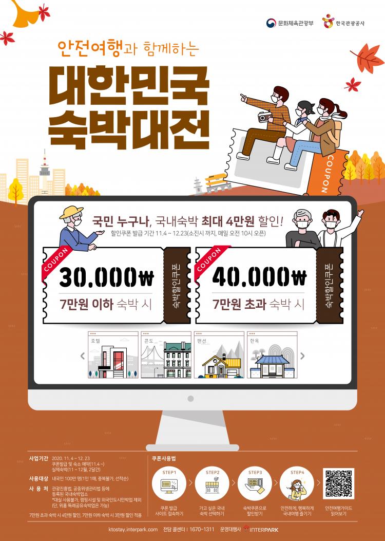 ¹®ÈüÀ°°ü±¤ºÎ¿Í Çѱ¹°ü±¤°ø»ç´Â Áö³ 8¿ù 20ÀÏ Áß´ÜÇß´ø '¾ÈÀü¿©Çà°ú ÇÔ²² ÇÏ´Â ´ë±¹¹Î ¼÷¹Ú ÇÒÀÎÄíÆù' Áö¿ø»ç¾÷À» 4ÀϺÎÅÍ Àç°³ÇÑ´Ù°í 2ÀÏ ¹àÇû´Ù.