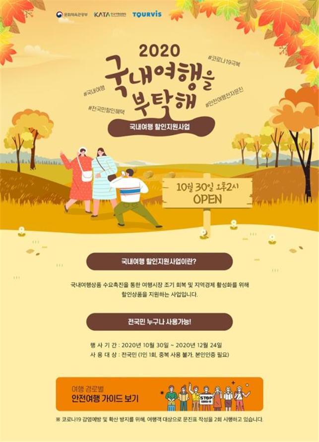 ¹®ÈüÀ°°ü±¤ºÎ´Â ¡®±¹³»¿©Çà Á¶±â¿¹¾à ÇÒÀλóǰ Áö¿ø»ç¾÷¡¯À» ÅëÇØ Äڷγª19 »çŰ¡ Àå±âÈµÇ¸é¼ Å¸°ÝÀÌ ½ÉÇÑ ¿©Çà¾÷°è¸¦ À§ÇØ °ø¸ð¿¡ ¼±Á¤µÈ ¿©Çà»óǰÀ» Á¶±â¿¡ ¿¹¾àÇϰųª ¼±°áÁ¦ÇÏ´Â °æ¿ì 30%ÀÇ ÇÒÀÎ ÇýÅÃÀ» Á¦°øÇϰí ÀÖ´Ù.