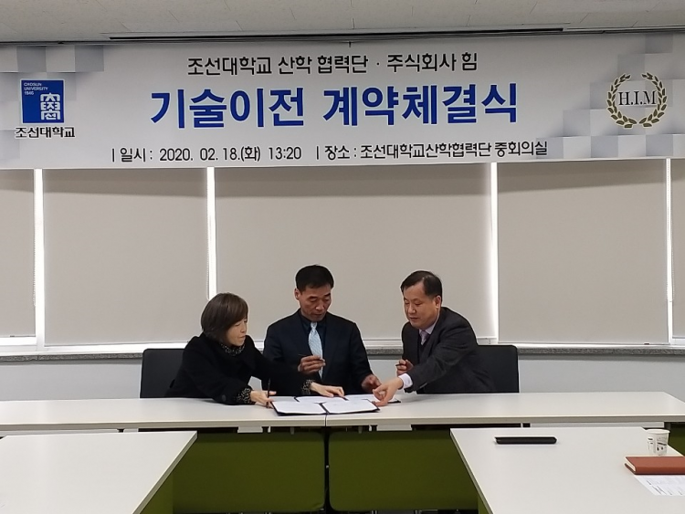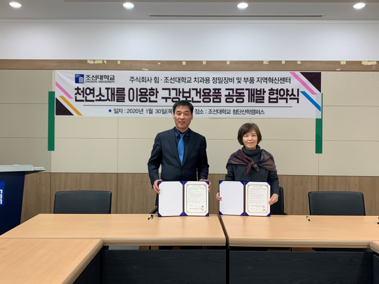 | ¢ßÈû ±èÇѼº ´ëÇ¥¿Í À̼÷¿µ Á¶¼±´ëÇб³ Ä¡°ú ´ëÇÐ RIC¼¾ÅÍÀåÀÌ Ãµ¿¬¼ÒÀ縦 ÀÌ¿ëÇÑ ±¸°º¸°Ç¿ëǰ °íµ¿°³¹ß Çù¾à½ÄÀ» ¸¶Ä£ ÈÄ Æ÷Á ÃëÇϰí ÀÖ´Ù.(»çÁø=(ÁÖ)Èû Á¦°ø) |