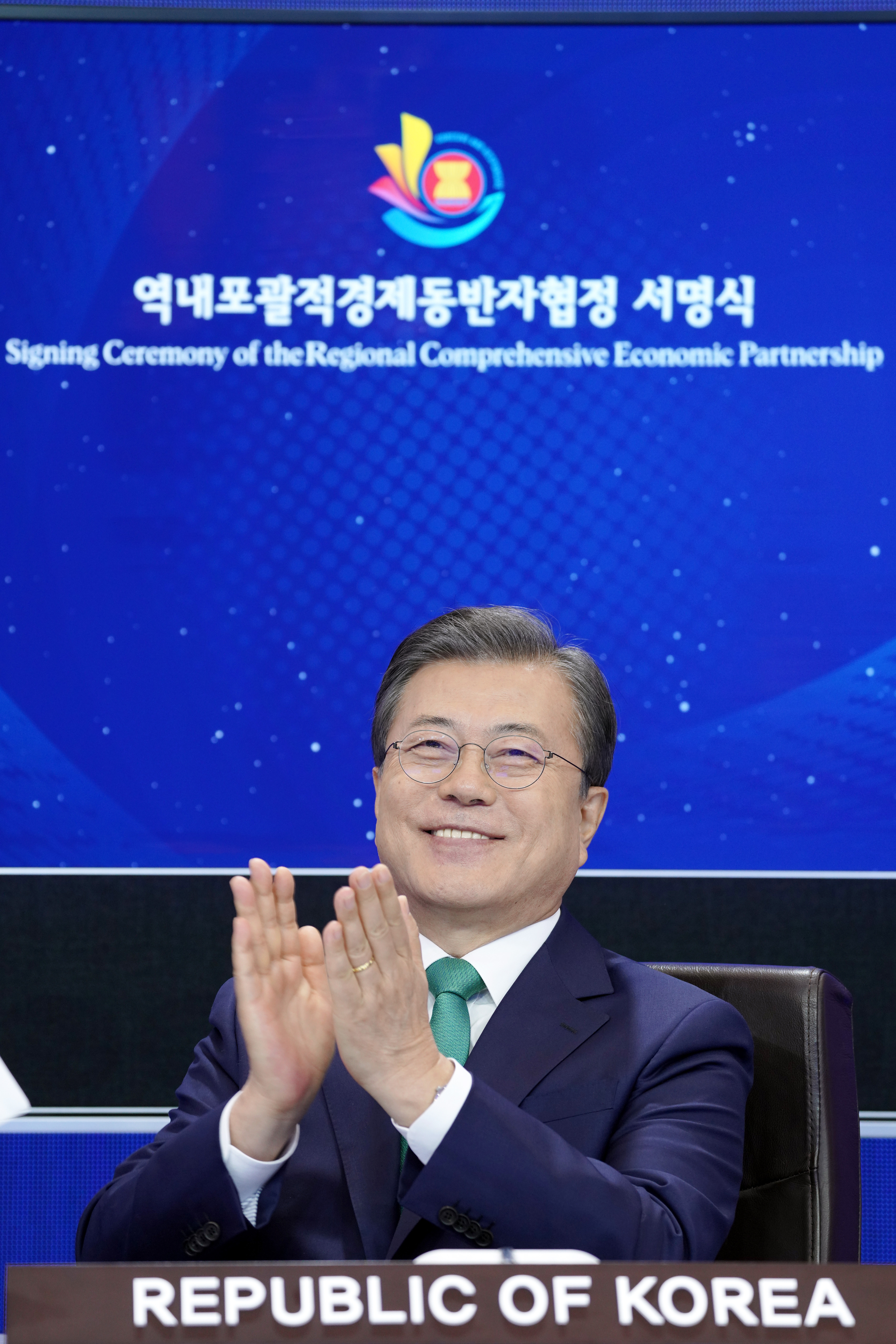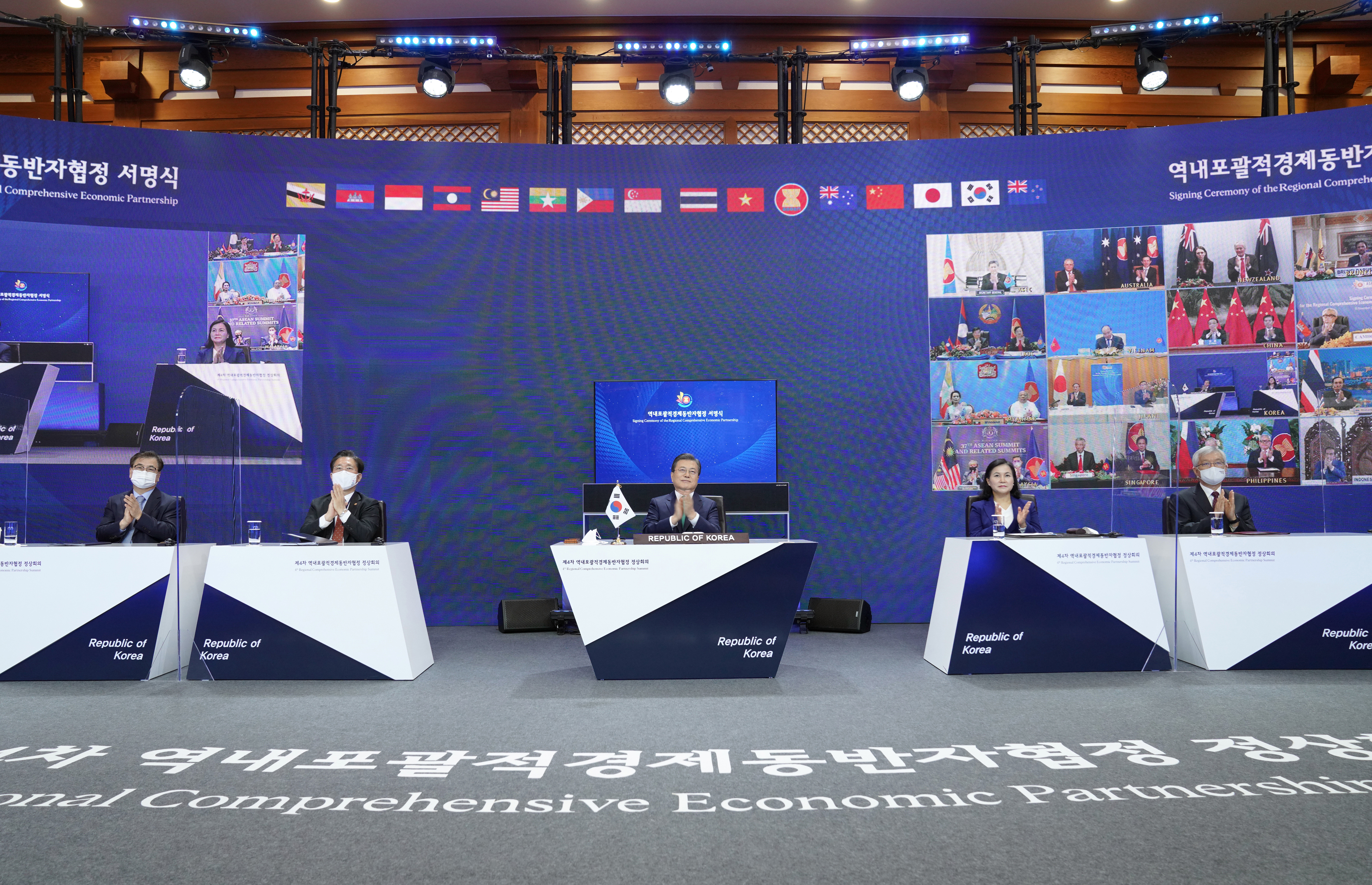 ¹® ´ëÅë·ÉÀº "RCEPÀº Äڷγª ÀÌÈĸ¦ ¼±µµÇÒ ÃÖÀûÀÇ Á¶°ÇÀ» °®Ãè´Ù"¸ç "¼¼°è ÃÖ´ë ÀüÀÚ»ó°Å·¡ ½ÃÀåÀÌ ¿¸®°í Áß¼Ò±â¾÷°ú ½ºÅ¸Æ®¾÷ÀÇ ¹ßÀü ´Ü°è¿¡ ´Ù¸¥ ±¹°¡µéÀÌ ¼ÕÀâ°í ÇÔ²² ¹Ì·¡¸¦ ¸¸µé¾î³ª°¡±â·Î Çß´Ù"°í ¼³¸íÇß´Ù.