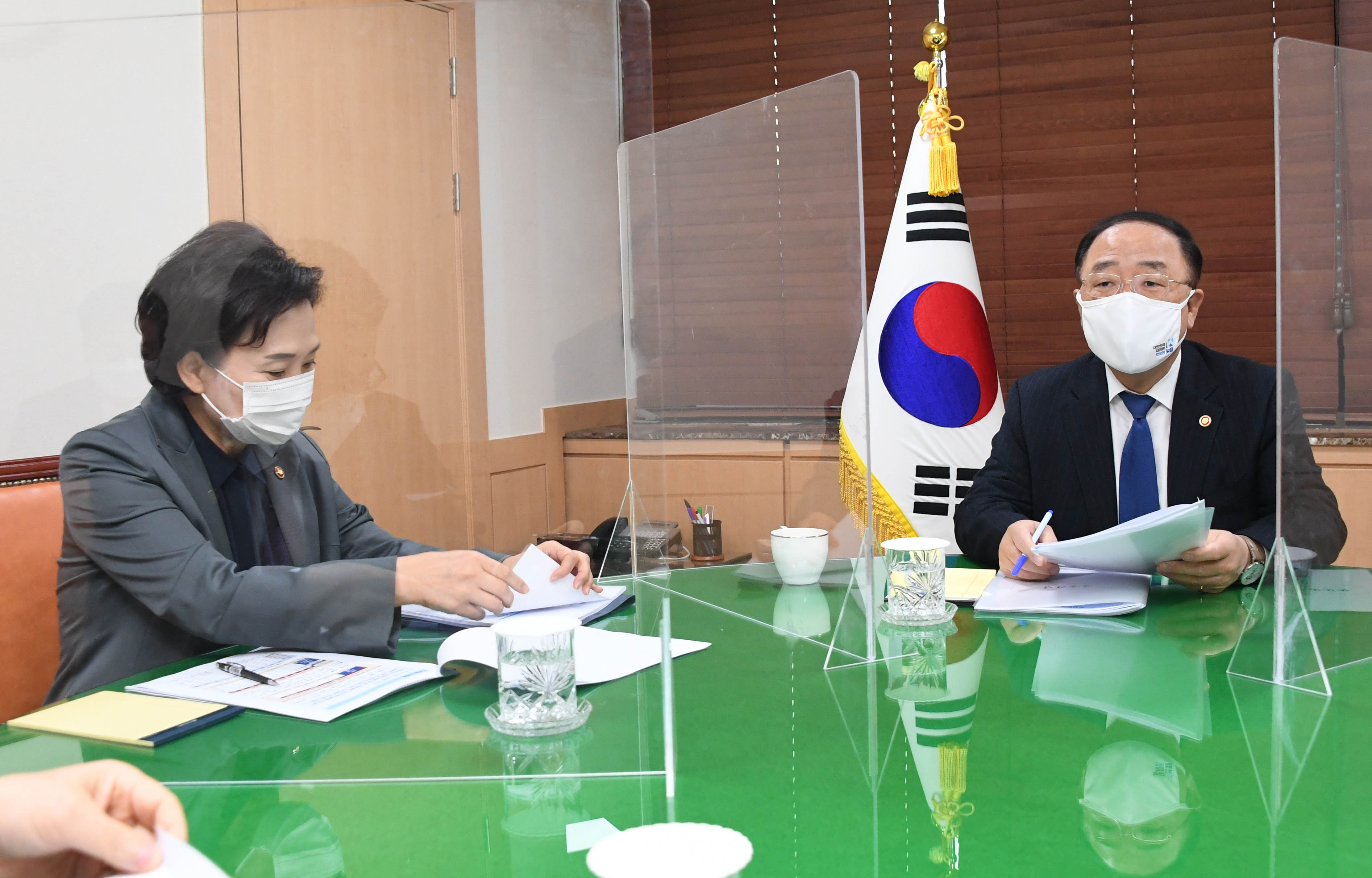 | È«³²±â ºÎÃѸ® °â ±âȹÀçÁ¤ºÎ Àå°üÀÌ 11ÀÏ ¼¿ï Á¾·Î±¸ Á¤ºÎ¼¿ïû»ç¿¡¼ \'Àü¼¼½ÃÀå »óȲ Áø´Ü, ¼¹Î¡¤Áß»êÃþ ÁְžÈÁ¤ ¹æ¾È\'À» ÁÖ¿ä³»¿ëÀ¸·Î °ü°èÀå°üȸÀÇ(³ì½ÇȸÀÇ)¸¦ ÁÖÀçÇϰí ÀÖ´Ù. ¿ÞÂÊÀº ±èÇö¹Ì ±¹Åä±³ÅëºÎ Àå°ü. |
