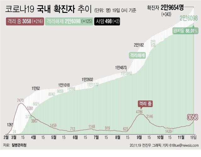 Áúº´°ü¸®Ã» Á߾ӹ濪´ëÃ¥º»ºÎ(¹æ´ëº»)¿¡ µû¸£¸é À̳¯ 0½Ã ±âÁØ ´©Àû È®ÁøÀÚ´Â Àü³¯ 0½Ã ÀÌÈÄ 343¸í ´Ã¾î³ 2¸¸9654¸íÀÌ´Ù.