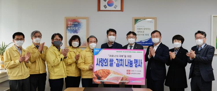 ±¤Áֽñ³À°Ã»ÀÌ NH³óÇùÄ«µå¿Í (»ç)¿ì¸®³ó¾÷Áö۱â¿îµ¿º»ºÎ·ÎºÎÅÍ ¿¬¸» µ¹º½ ¼¼´ë Áö¿øÀ» À§ÇÑ ¡®»ç¶ûÀÇ ½Ò¡¤±èÄ¡ ³ª´® Çà»ç¡¯ÀÇ ÀÏȯÀ¸·Î 1,300¸¸ ¿ø »ó´çÀÇ Çö¹°(½Ò¡¤±èÄ¡)À» 24ÀÏ Àü´Þ¹Þ¾Ò´Ù.