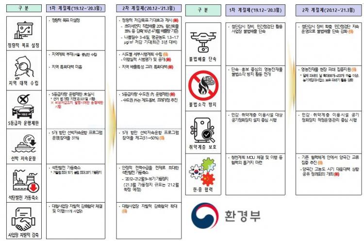 ȯ°æºÎ´Â À̹ø ¹Ì¼¼¸ÕÁö °èÀý°ü¸®Á¦ Á¤Ã¥À» ÅëÇØ Ãʹ̼¼¸ÕÁö(PM-2.5) Á÷Á¢ ¹èÃâ·®À» 2016³â °°Àº ±â°£ ´ëºñ 6729t(20.1%) °¨ÃàÇÑ´Ù´Â ¹æÄ§ÀÌ´Ù. ÀÌ ¿Ü¿¡ Ȳ»êȹ°(SOx) 4¸¸1404t(35%), Áú»êȹ°(NOx) 5¸¸520t(12%), Èֹ߼ºÀ¯±âÈÇÕ¹°(VOCs) 2¸¸1054t(6%)À» ÁÙÀδÙ.