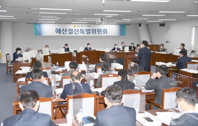 À̿뼷 ±¤ÁÖ½ÃÀåÀÌ Á÷Á¢ ³ª¼ ÀÇ¿øµéÀ» ¼³µæÇÏ´Â µî »è°¨ ¿¹»êÀ» ¿ø»ó º¹±¸Çϱâ À§ÇØ ¾È°£ÈûÀ» ¾²°í ÀÖÀ¸³ª ½ÃÀÇȸµµ ¸ðÈ£ÇÑ ºñ¿ë Ã߰質 °ú´ÙÇÑ ¼±½É¼º ¿¹»ê Ã¥Á¤ µîÀ» ÁÖÀåÇÏ¸ç ¸Â¼°í ÀÖ¾î °á·ÐÀÌ ¾î¶»°Ô ³¯Áö ÁÖ¸ñµÈ´Ù.