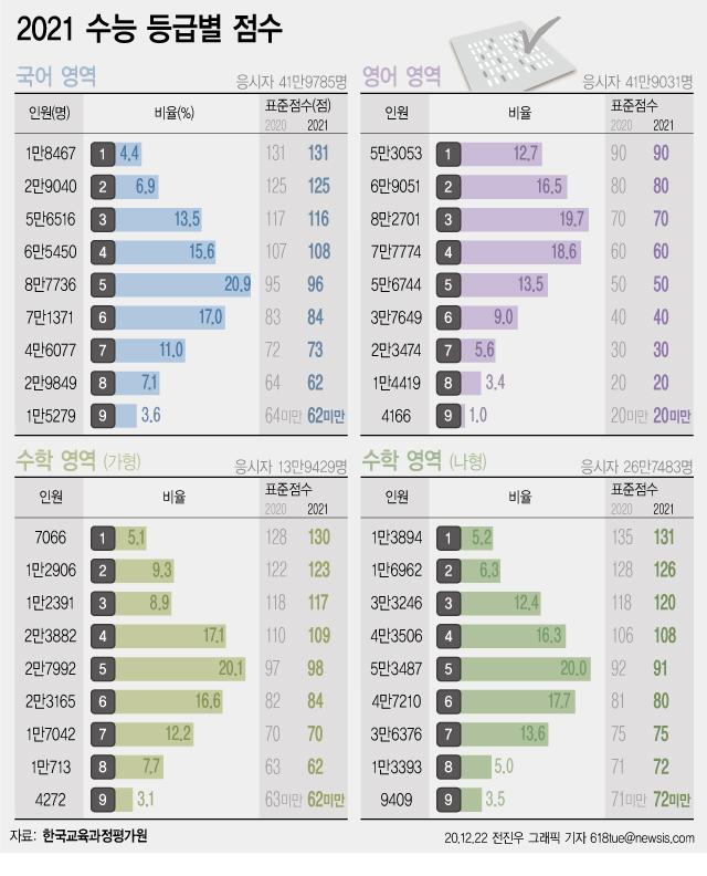 ¼öÇп¡¼´Â ÀÚ¿¬°è¿ ÇлýµéÀÌ ÁÖ·Î ÀÀ½ÃÇÏ´Â °¡ÇüÀÇ 1µî±Þ ±¸ºÐ Á¡¼ö°¡ 130Á¡À̾ú°í, Àι®°è¿ ÇлýµéÀÌ ÁÖ·Î Ä¡¸£´Â ³ªÇüÀº 131Á¡À̾ú´Ù. Áö³ÇØ ¼ö´É¿¡¼ ¼öÇÐ °¡ÇüÀÇ 1µî±Þ ±¸ºÐÁ¡¼ö´Â 128Á¡, ³ªÇüÀº 135Á¡À̾ú´Ù.