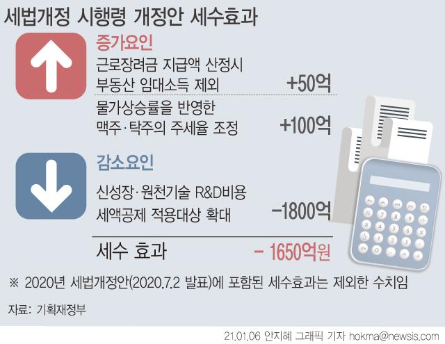 À̹ø ½ÃÇà·É °³Á¤À¸·Î 1650¾ï¿ø ¼¼¼ö°¡ °¨¼ÒÇÒ °ÍÀ¸·Î ÃßÁ¤Çß´Ù. ÀÌ´Â Áö³ÇØ 7¿ù ¹ßÇ¥µÆ´ø '2020³â ¼¼¹ý°³Á¤¾È'¿¡ Æ÷ÇÔµÈ ¼¼¼öÈ¿°ú´Â Á¦¿ÜµÈ ¼öÄ¡´Ù.